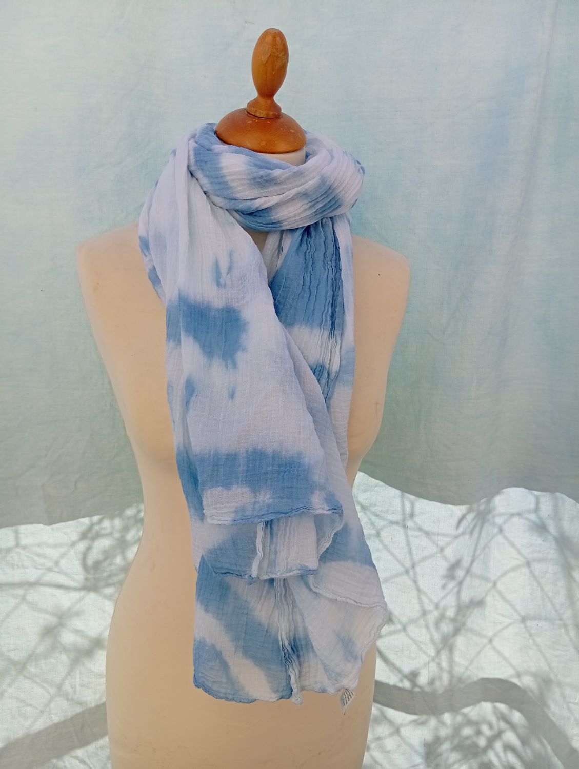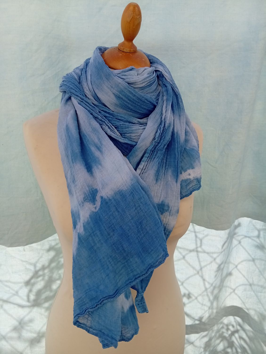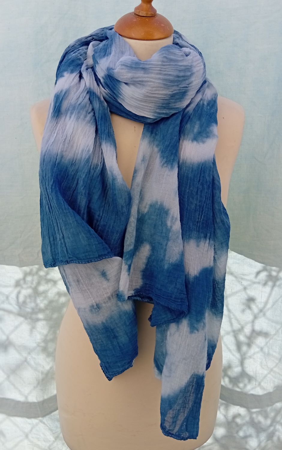 Nos chèches, écharpes , vêtements, linge de toilette et de maison teints de façon naturelle
