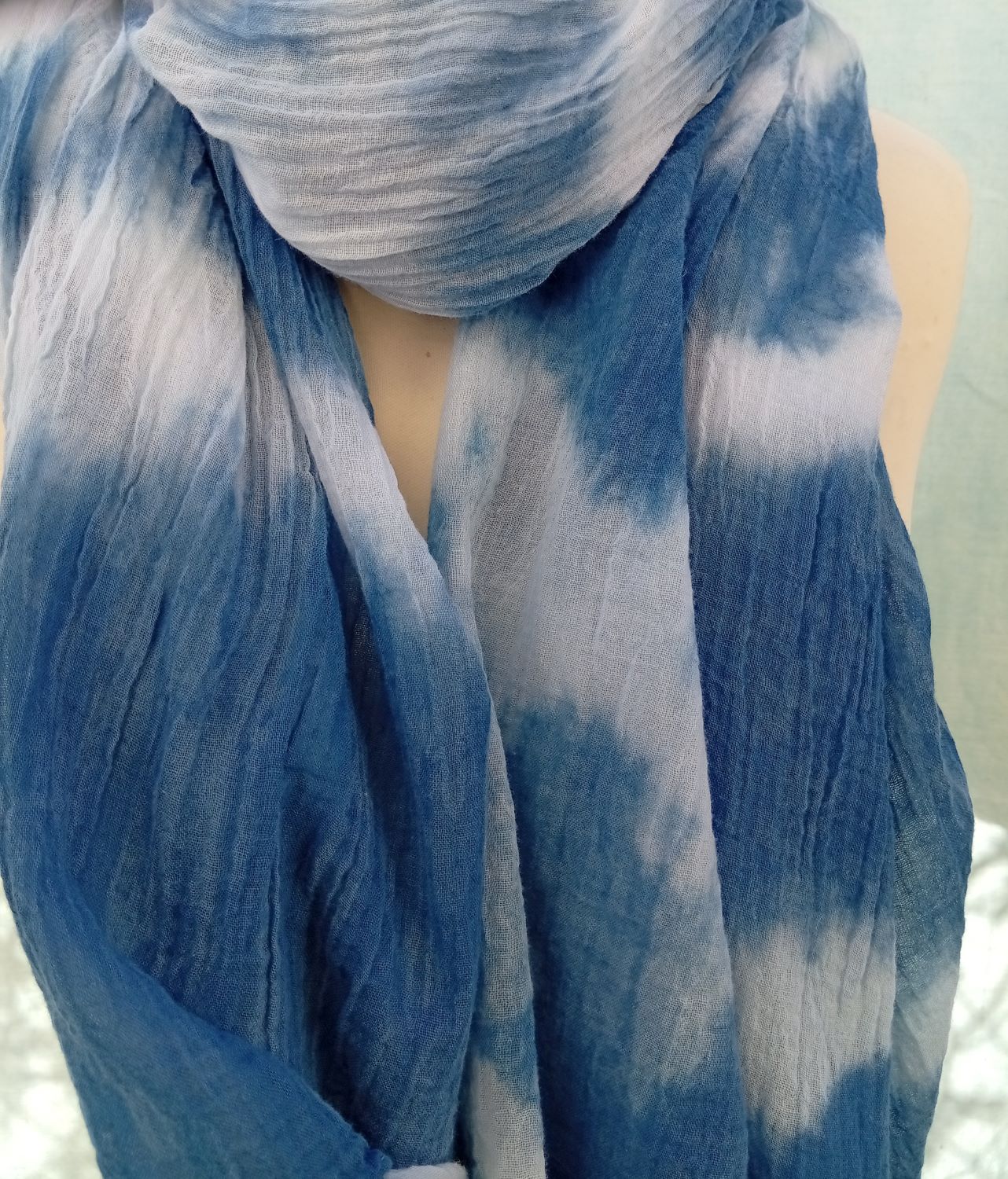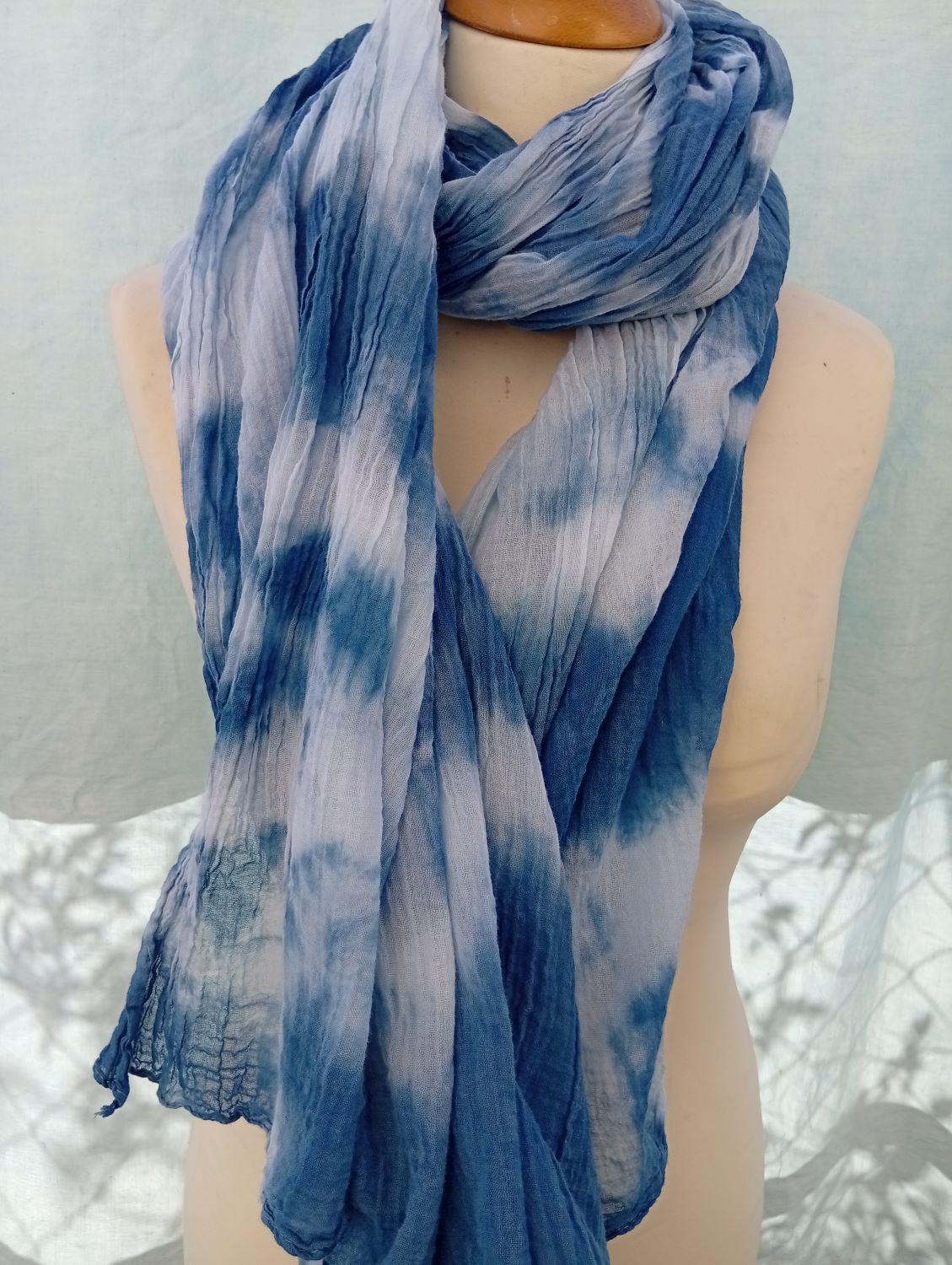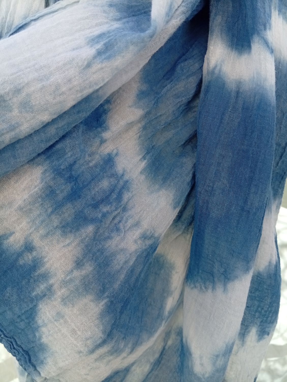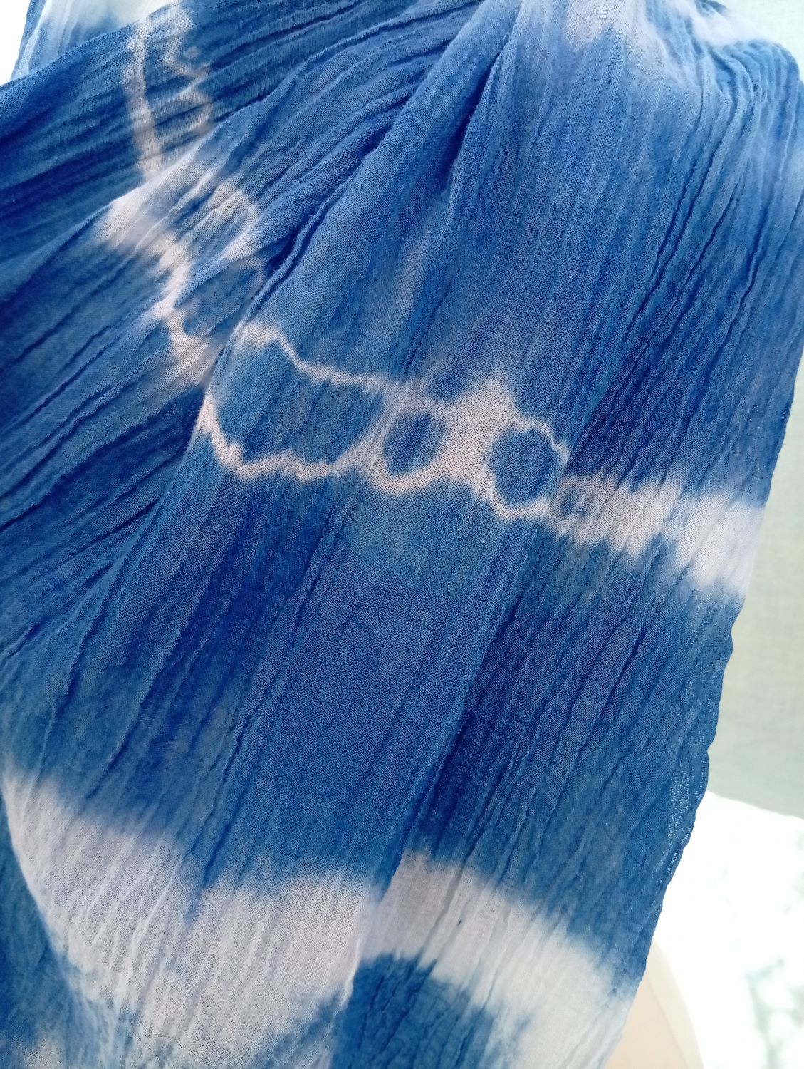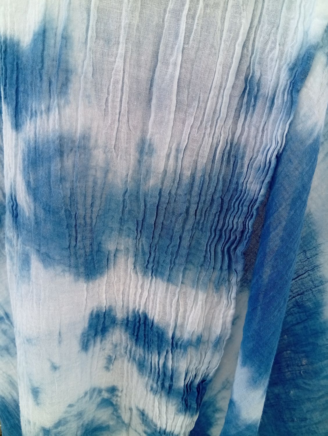 Teint à la main dans notre atelier, de façon 100% naturelle.